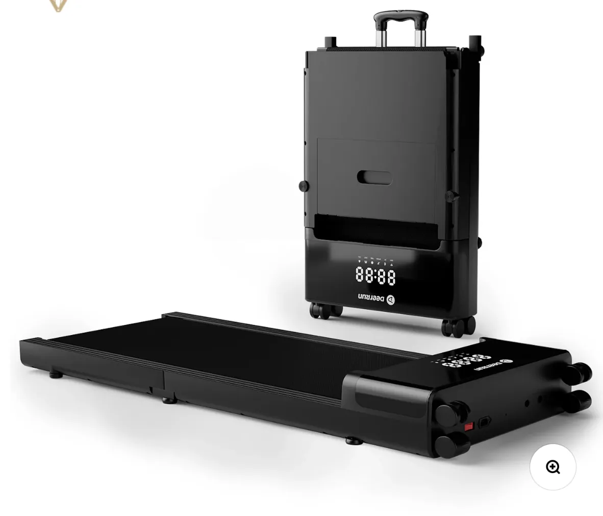 The revolutionary DeerRun treadmill features suitcase-fold design for 60% space saving. With 3.8MPH walk-run modes and military-grade frame, it transforms from under-desk walker to full trainer. Includes detachable workstation for active productivity. Ultra-quiet <45dB operation makes it perfect for home offices. Your all-in-one fitness solution that disappears when not in use.