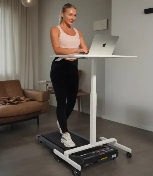 This standing desk is not only suitable for work and study, but also very suitable for use with our walking machine. Our Sit Stand Desk has portable design and lockable casters,